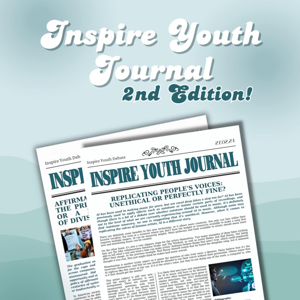 Thus, for aspiring young debaters, being aware of these issues and grasping their argumentative underpinnings is important in order to have an informed, and nuanced debate. So, we invite you to immerse yourself in the second newspaper of the “Inspire Youth Journal” in order to understand more about these topics!