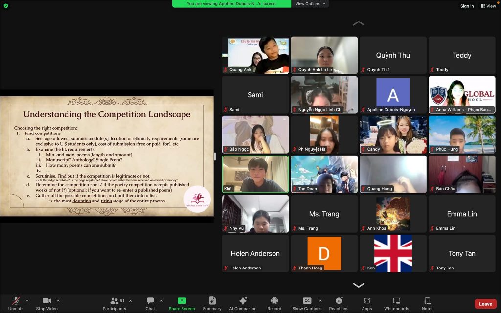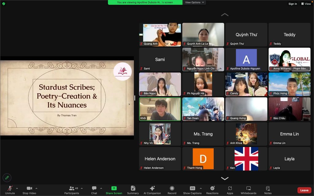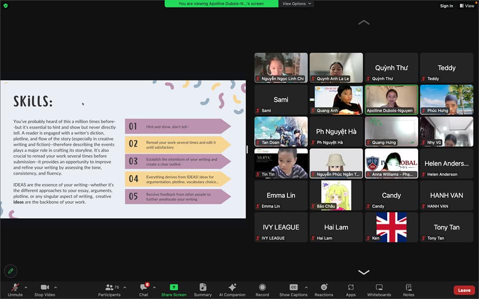 It was amazing! Having over a hundred young people from 24 provinces and cities in Vietnam as well as registrants and participants from as far away as the United States, Canada, and Australia was a remarkable achievement for the Summer Talkshow “Inspiring Vietnamese Youth with the Art of Writing,” which took place online on August 3rd. It provided a composite picture of the experiences that enriched the talkshow and served as a testament to the importance and impact that the talkshow had on young writers.